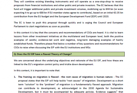 CSOs concerns regarding the EU External Investment Plan and recommendations to ensure a pro-poor instrument